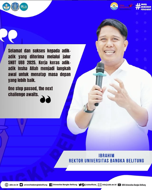 Berdasarkan hasil Seleksi Nasional Berdasarkan Test (SNBT) Tahun 2025, berikut diumumkan nama-nama calon mahasiswa baru Universitas Bangka Belitung yang LULUS melalui jalur Seleksi Nasional Berdasarkan Prestasi (SNBT) sebagaimana terlampir.
