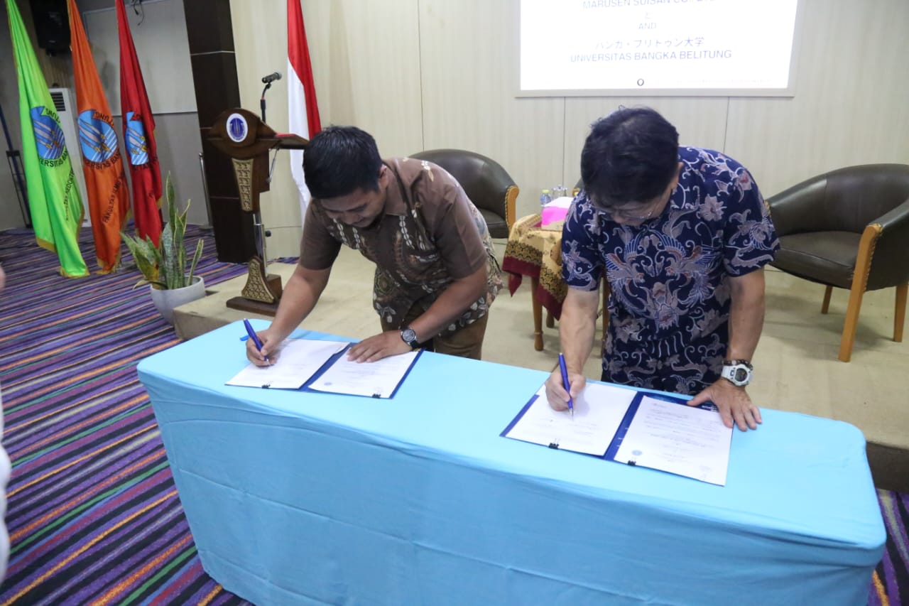 Bangka, UBB– Universitas Bangka Belitung (UBB) perkuat jejaring kerja sama internasional dengan menandatangani Nota Kesepahaman (MoU) bersama Marusen Suisan Co., Ltd., perusahaan asal Jepang yang bergerak di bidang pengelolaan hasil perikanan laut. Acara tersebut berlangsung di Aula Balai Besar Peradaban (BBP) Gedung Rektorat UBB, pada hari Jumat (26/9/25)